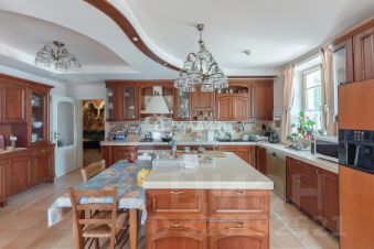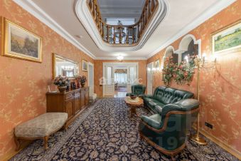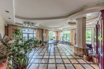 Второй этаж: холл, кухня 40 кв.м со столовой 33 кв.м, гостиная 54 кв.м с действующим камином и балконом, кабинет 29 кв.м, каминная 28,6 кв.м с выходом на террасу, игровая комната 27 кв.м, библиотека 15,5 кв.м, санузел.