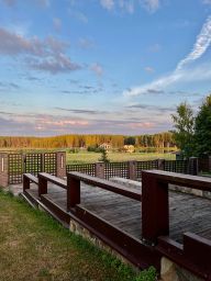 Внутри дома есть всё необходимое для жизни: на первом этаже прихожая 30.7кв.м, удобная кухня 21кв.м, огромная гостиная с громадным окном 54.8кв.м, и камином в зоне отдыха, изолированная комната 30кв.м, 2 санузла,гардеробная 8.7 кв.м, просторная терраса почти по всему периметру дома. На втором этаже две светлые просторные спальни 30кв.м и 15.5кв.м, в мастер-спальне имеется выход на лоджию с шикарным видом на озеро и лес, санузел, гардеробная 20кв.м, прихожая 13.5 кв.м, Балки под крышей и стойки на террасе из клееного бруса премиум качества. Общая площадь дома с учётом цокольного этажа, террас и лоджий 496.9кв.м.