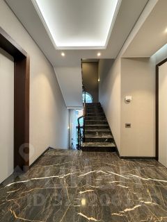 На участке 15 соток расположен просторный, светлый дом из кирпича в минималистичном стиле, площадью 508 кв. м. Есть просторная крытая веранда. Также на участке расположена хозяйственная постройка площадью 35 кв. м (используется для хранения инвентаря). Весь интерьер выполнен в спокойных тонах, что позволяет полностью расслабиться и отдохнуть после тяжёлого рабочего дня. В доме тёплые полы, выложенные мрамором. Немецкие алюминиевые окна. На первом этаже располагается уютный кабинет, санузел, кладовая, котельная, просторная гостиная с камином и кухня. На втором этаже 4 спальни и санузел. На третьем этаже одна большая и две маленькие спальни, санузел. Вся сантехника в доме европейская известных брендов, в кухне встроенная мебель европейского производства. На территории участка растут хвойные и плодовые деревья, по всему участку аккуратный ухоженный газон. К дому примыкают два гаража с отличной системой вентиляции и кондиционирования. Дом полностью готов под заселение: заезжай и живи.