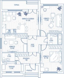 -спальня 16,7м2 с санузлом 3м2,