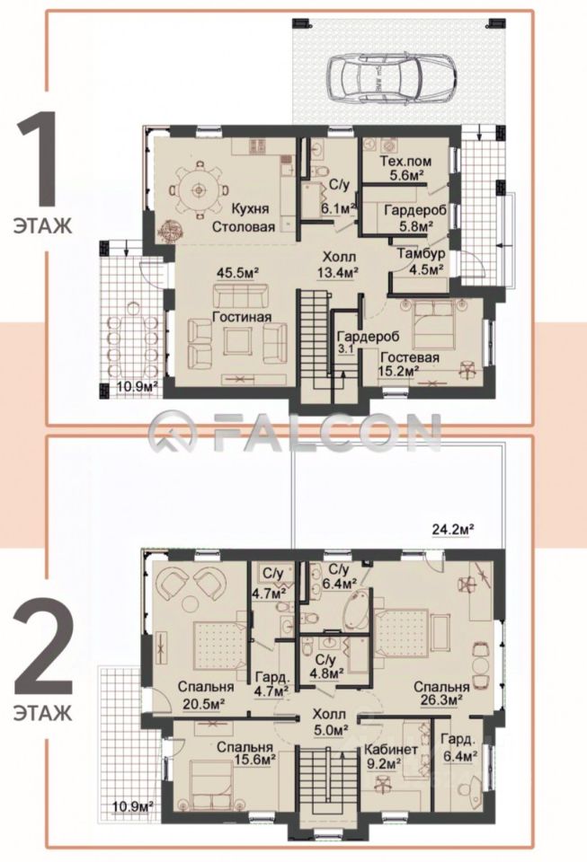 Площадь дома 177 кв. м плюс дополнительный мансардный этаж. 4 отдельных спальни, 3 санузла. Дом расположен на отдельном участке, на территории закрытого коттеджного посёлка "Витязь".