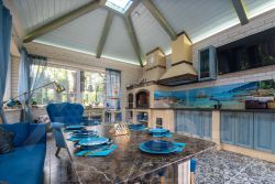 В основном доме зона СПА с бассейном, спортзал, второй свет, камин, оборудован кинотеатр, зимний сад. На участке гостевой дом (дом для персонала) под ключ, баня, всесезонная беседка с зоной барбекю, гараж для техники. Выполнен ландшафтный дизайн.