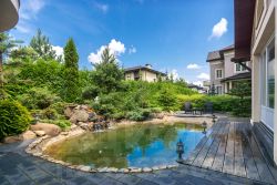 Участок 21 сотка с ландшафтным дизайном, по периметру высажены туи. Имеется свой выход в лес. На участке расположены: готовый к проживанию гостевой дом (1 этаж: кухня-столовая, с/у; 2 этаж: спальня и с/у), полностью оборудованная баня, всесезонная беседка с зоной барбекю, искусственный пруд с водопадом, поляна с очагом.