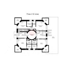1 этаж: холл, гардеробная, прачечная, котельная, гостиная с камином, кухня-столовая с выходом на террасу, библиотека, кухня для персонала, комната свободного назначения, с/у.