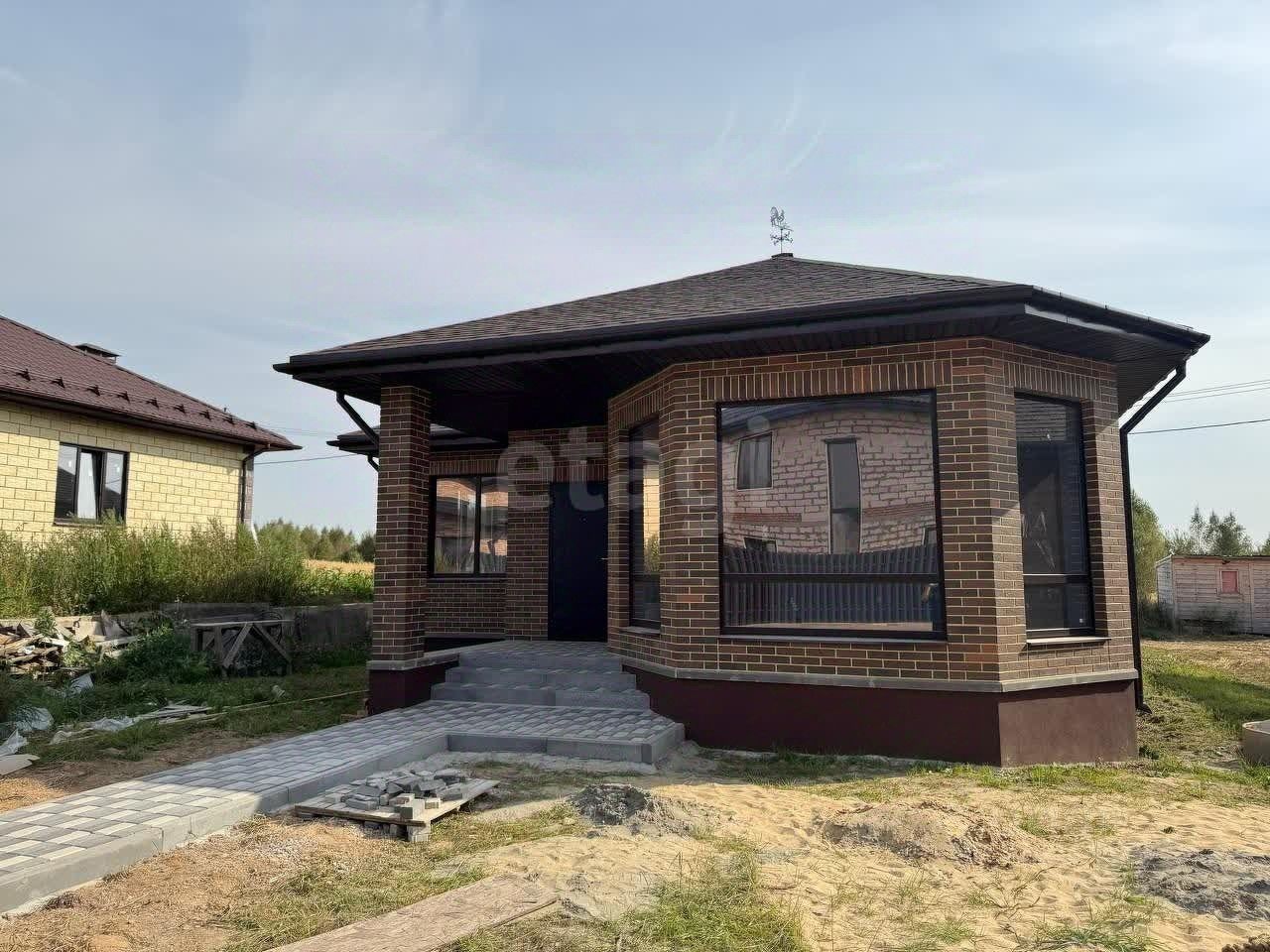 ДОМ. 120 м2 из них 20 м2 это терраса. Удобная планировка 3 спальни + кухня гостиная. Построен из газоблока, внутренние стены - керамика. Фундамент - ленточный, 1,2 м заглубления. Черновая отделка. Чердак утеплен.