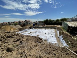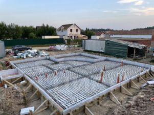 • Фундамент дома: УШП (утепленная шведская плита). Вокруг плиты дренажная система. Отопление дома происходит только за счет плиты в которой проложены 11 контуров водяного теплого пола. Максимальная энергоэффективность и комфорт.