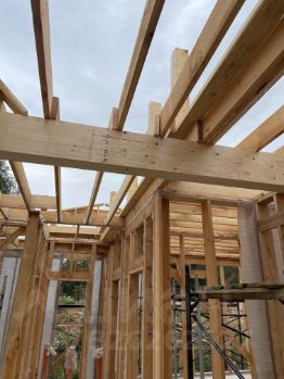 Дом достроен в 2022 году по каркасной технологии компанией Мечтаево.