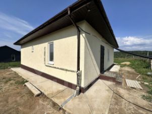 Цоколь дома- утеплен, декоративная штукатурка+ бетонная отмостка по периметру дома.