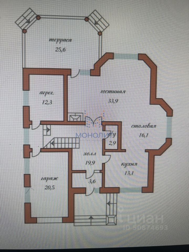 Материал стен - кирпич, облицовочный кирпич, фундамент - ленточный, перекрытия - ж\б плиты.