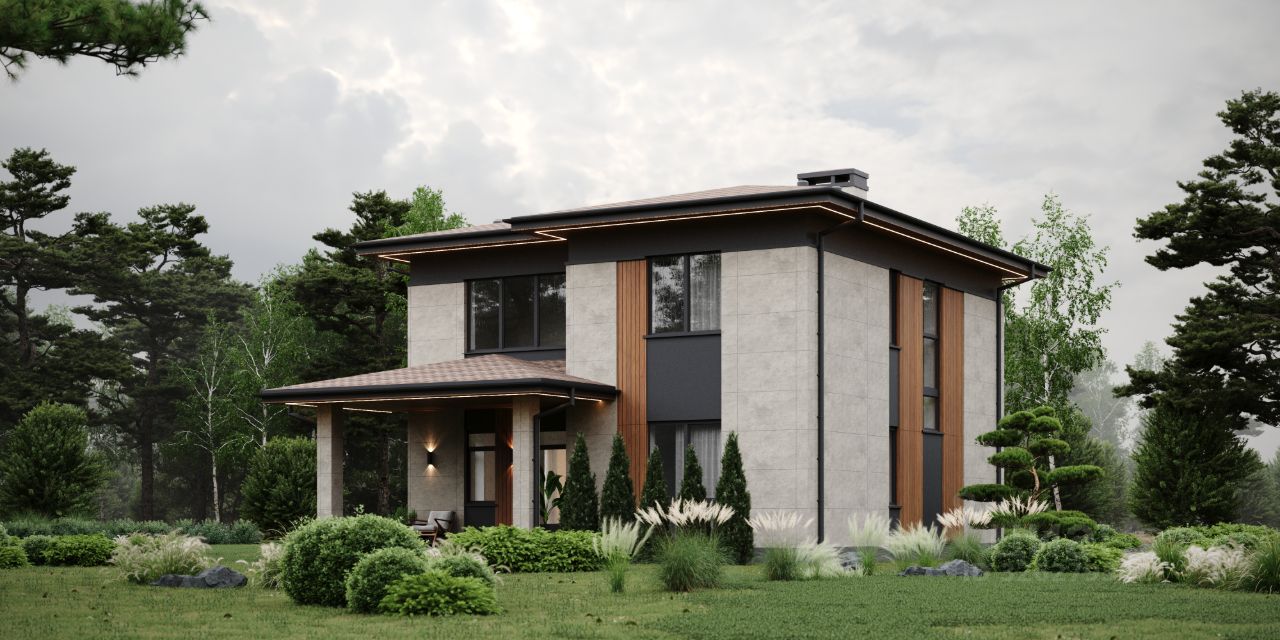 Современный 2-этажный дом 181м2 с панорамными окнами в комплектации Тёплый контур от застройщика Конкорд Групп.