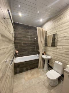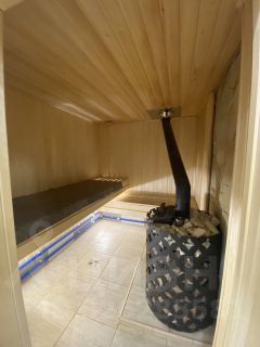 В ванной закрытая каменка, капельный полив, стены натуральный камень парящие полки. В ванной пол и стены тёплые. Установлен гидроаккумулятор в ванной 1100 литров плюс насос в колодце. Бойлер в ванной .