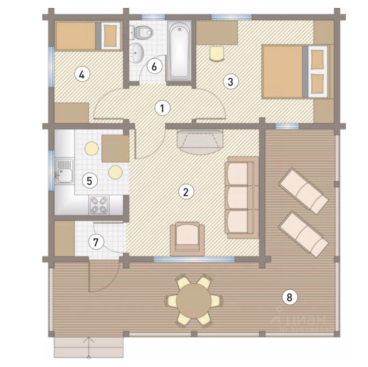 Современный дом из клееного бруса для вашей уютной жизни. Планировка: Гостиная: 14.06 м² Кухня: 5.16 м² Спальня 1: 12.09 м² Спальня 2: 6 м² Холл: 2.00 м² Терраса: 27.50 м² Тамбур: 2.00 м² Санузел: 3.33 м² Общая площадь дома: 72 м² В стоимость входит: земельный участок, фундамент, каркас дома из клееного бруса, кровля из металлочерепицы, панорамные окна и входная группа. Об участке: 50:33:0010474:1607, площадь 6.52 сот., сектор А. Вид на лес, ровный участок, много солнца, есть деревья на участке. Одноэтажный дом общей площадью 72 м², имеет прямоугольную конфигурацию планировочного решения, центральным помещением которого является просторная гостиная, образующая с кухней одно большое пространство. Из гостиной через тамбур можно попасть на большую террасу. Утепление пола и потолка под кровлей 200 мм, окна с двойным стеклопакетом, позволяют создать комфортную температуру в любые морозы с минимальным расходом энергии. Стоимость: 5 900 000 ₽ Комплектация: Тёплый контур Срок строительства: от 4 месяцев Дополнительно: черновая и чистовая отделка, инженерные коммуникации, кухонный гарнитур, мебель и техника. При покупке участка мы подарим вам 15-летние алтайские кедры, из расчёта 1 кедр на 2 сотки земли. Кедровый парк в Подмосковье — уникальное место с частицей алтайской природы и неповторимым хвойным ароматом прямо у вас дома. Земельные участки с молодыми алтайскими кедрами от 6 до 40 соток, с участков открывается потрясающий панорамный вид на долину, реку, леса и поля. Мы находимся всего в 50 минутах от МКАД между Симферопольским и Каширским шоссе (М2 и М4). Посёлок расположен в Ступинском районе на окраине леса, в пешей доступности от реки. Рядом есть вся необходимая инфраструктура: остановки общественного транспорта, медицинские учреждения, школы и детские сады, а также исторические и культурные памятники. В 30 минутах от нас находится настоящий природный оазис заповедник зубров, а до озера "Глубокое" с пляжем можно доехать на машине всего за 10 минут. Посёлок с центральными коммуникациями, предусматривает как круглогодичное проживание, так и временный отдых: электричество, газ, вода, интернет, телевидение, видеонаблюдение, освещение улиц, круглогодичный проезд, дороги с твёрдым покрытием и заботливая сервисная компания. Мы развиваем инфраструктуру внутри посёлка, чтобы у вас был доступ ко всему необходимому. Проектом предусмотрено: кафе, спортивные площадки, пляж, парк для прогулок и хайкинга, место для мероприятий, горка для тюбинга зимой, детская площадка, ozon, wildberries, яндекс маркет, пасека и хвойный питомник. Вы можете приобрести любой участок в рассрочку до 3 лет без банков и справок. Вам не потребуется самостоятельно заниматься оформлением документов, все вопросы мы берём на себя. Постройте дом своей мечты в месте с первозданной природой и всей необходимой инфраструктурой. Звоните или пишите, чтобы получить подробную информацию о покупке участка и строительстве дома. Информацию о текущих акциях, скидках и актуальных ценах уточняйте в отделе продаж. Добавляйте объявление в избранное, чтобы не потерять.