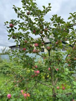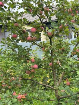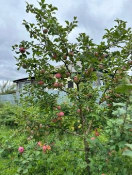 На территории участка построена каменная баня, есть две теплицы, гараж, мастерская и сени (которые используются для хранения). На участке растут плодовые деревья: пять яблонь, две сливы, четыре вишни.