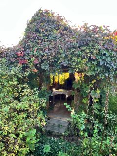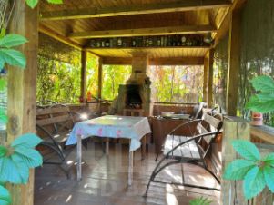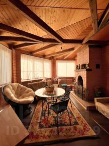 На первом этаже: большой холл, кухня, кладовая, две комнаты, терраса с камином, санузел