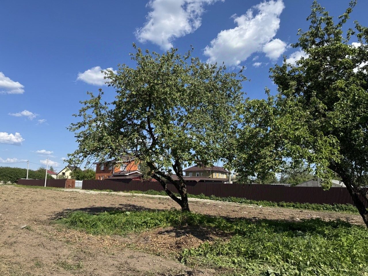 На участке растут плодовые яблони, которые создают уют и дарят свежие фрукты.