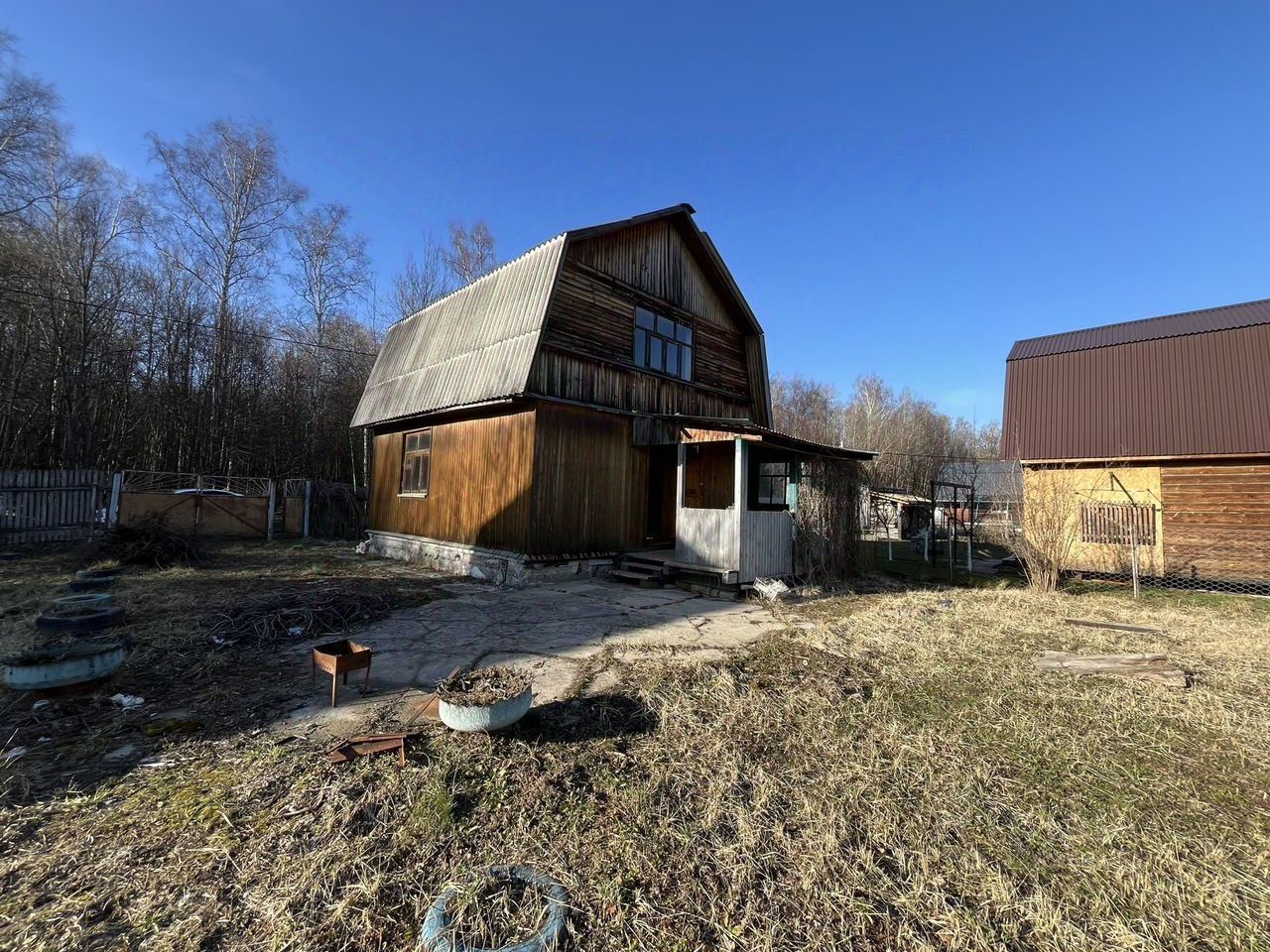 Участок 6 соток правильной формы, огорожен забором. Растут плодовые деревья. Также на участке есть колодец. Участок граничит с лесным массивом.