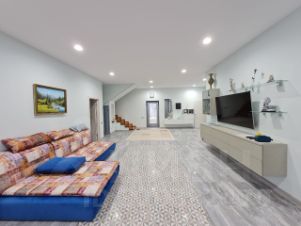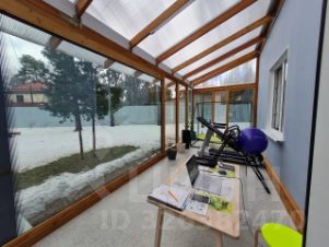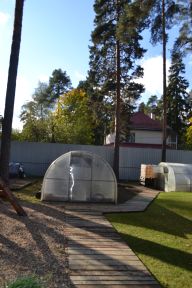 Жилой дом 1: пл.277 м2 +зимний сад с имеет свой септик, свой газовый ввод, два ввода по электричеству, вода из скважины, система фильтрации воды, везде теплые полы. На первом этаже: просторная кухня "Кухонный двор" со встроенной техникой, натуральная каменная столешница, большой обеденный рабочий стол и подоконники сделаны в едином стиле из камня Лабрадорит черного цвета с синей искрой. Кабинет, комната для гостей, просторная гостиная, гардеробная, санузел, гостевой туалет, эксплуатационная комната (на 300 литров газовый водонагреватель AMERICAN PROLine SUPER EAGLE, отопительной газовой системой Nobby Smart. Зимний сад и одновременно тренажерная расположены по южной стороне дома с панорамным остеклением придает дому особое пространство открытости и уюта, там особенно комфортно в зимний период времени. На втором этаже три комнаты со встроенными гардеробными, библиотека, просторная ванная комната с гидромассажной ванной, вся встроенная мебель изготовлена на заказ.