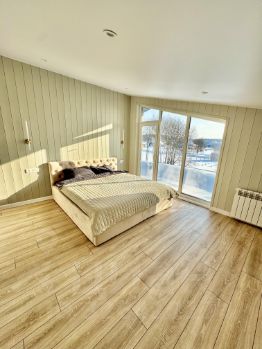 Дом построен по современной каркасной технологии именно для круглогодичного проживания: тёплый, энергоэффективный, с низкими затратами на отопление. По всему дому — тёплые полы, панорамные энергоэффективные окна, система вентиляции.