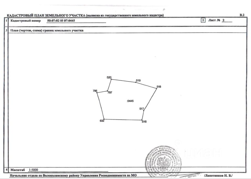 Продается земельный участок по адресу; Московская обл, р-н Волоколамский, с/пос. Ярополецкое, р-н д. Голоперово ) / Кадастровый номер 50:07:0020507:445/.Разрешенный вид использования: Для ведения крестьянского (фермерского) хозяйства. Перспективное живописное место, обеспечивающее идеальные рекреационные свойства района, удобный подъезд с Новорижского шоссе, вся инфраструктура города Волоколамска.