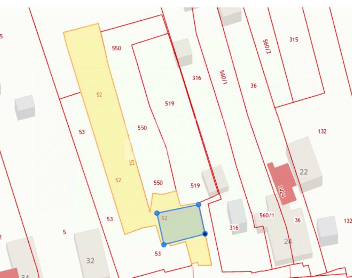 Участок 9.6 соток неправильной формы, но есть прямоугольник размером 14 метров на 11 метров для строительства дома.