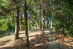 Площадь прилегающего земельного участка - 28 соток. Дорожки и отмостка монолитные, сделан дренаж и водоотведение за пределы участка. Во дворе дома расположена парковочная зона на 5-6 автомобилей, а в самом доме - крытый гараж на 3 автомобиля. Выполнен ландшафтный дизайн, сосны, ели, декоративные кустарники, туи, прогулочные дорожки. На участке уютная беседка с мангальной зоной. На территорию есть два въезда с противоположных сторон, второй въезд также с внутренней парковкой.