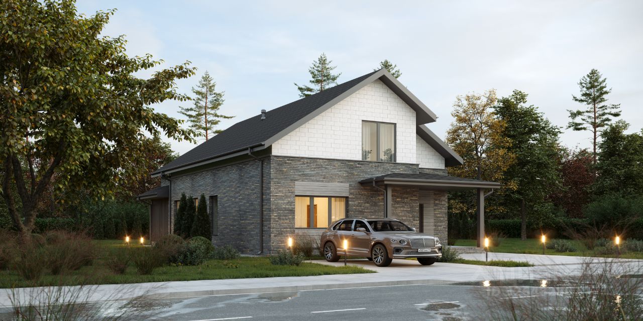 Современный каменный дом (газоблок) для постоянного проживания по проекту "Опал", 238,4 м2 с тремя спальнями, просторным балконом и террасой от застройщика Конкорд Групп.