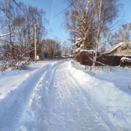 Дорога к дому хорошая. Летом вся зеленая. Многие живут постоянно, поэтому зимой улицу регулярно чистят от снега. Такси и курьеры приезжают.