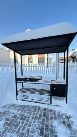 Участок в четыре сотки. Пока здесь организован аккуратный газон, удобная зона для приготовления пищи на открытом огне, брусчатые дорожки. Отдельно предусмотрено парковочное место для двух автомобилей.