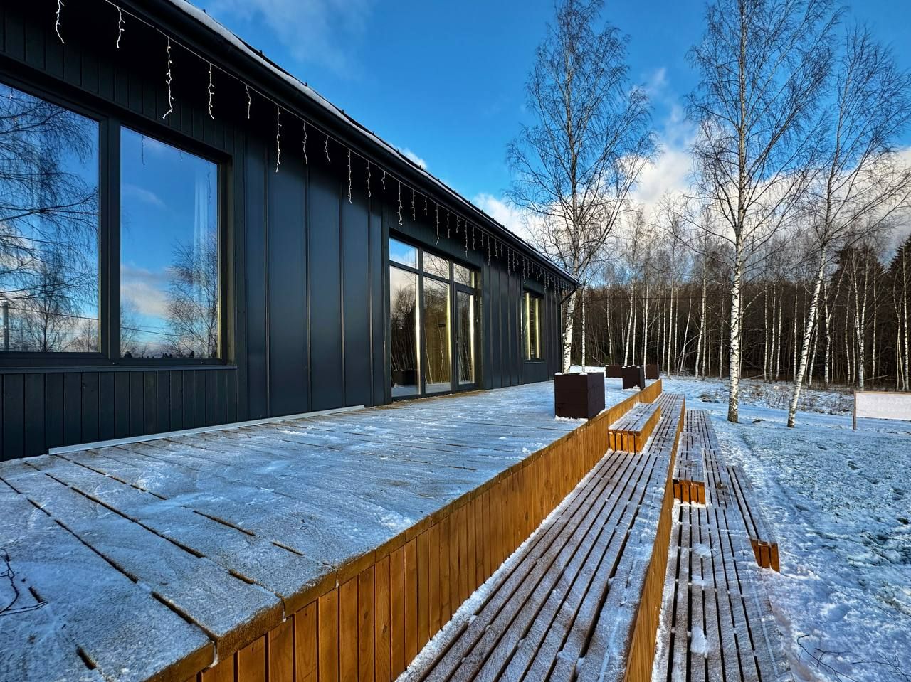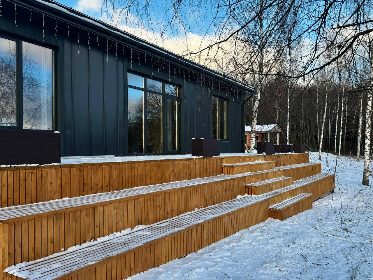 На террасе открывается потрясающий вид на лес, который радует глаз и наполняет душу спокойствием.
