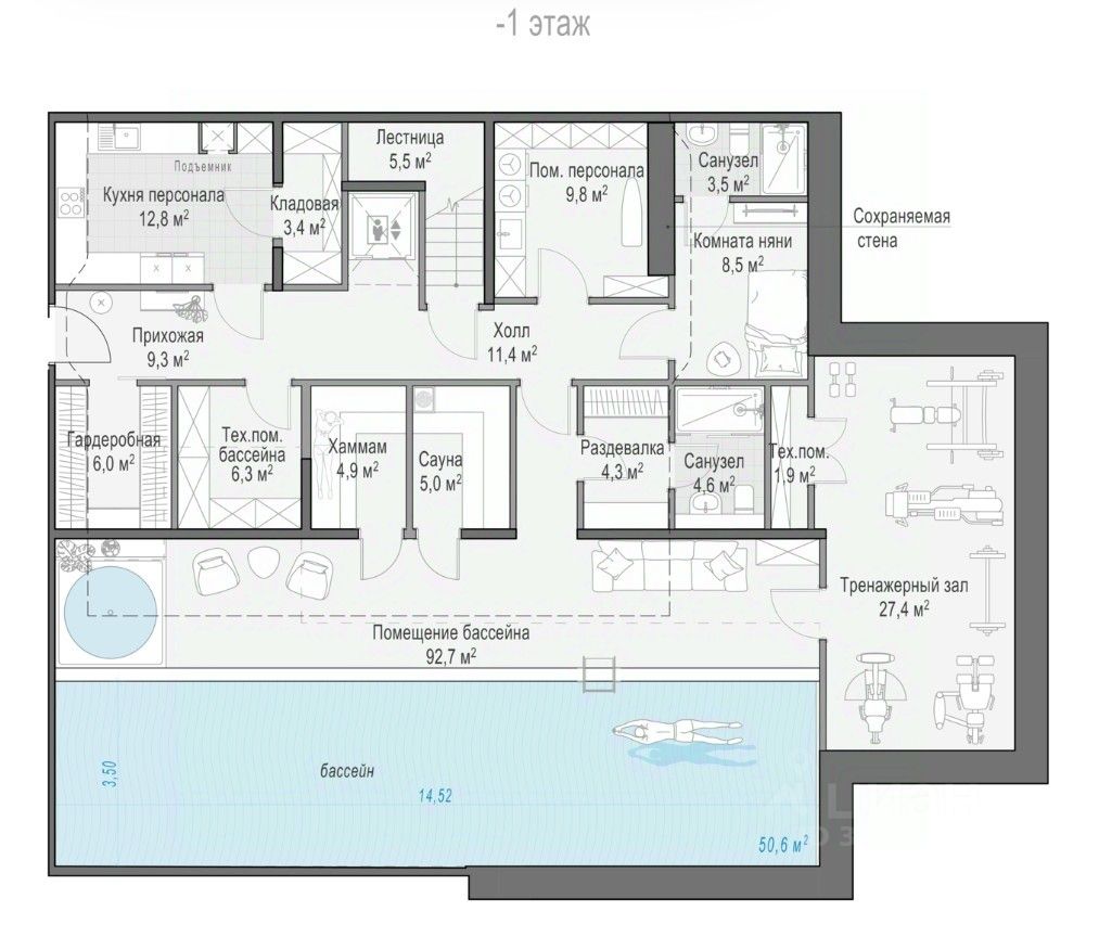 • Возможность предусмотреть индивидуальный спа с бассейном