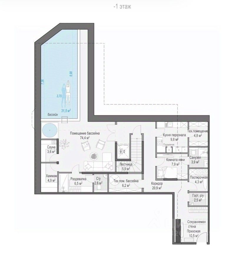 • Возможность предусмотреть индивидуальный спа с бассейном