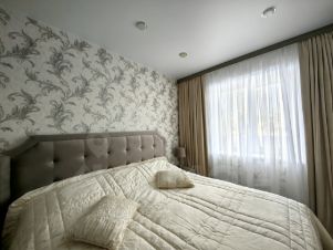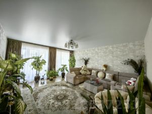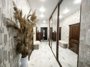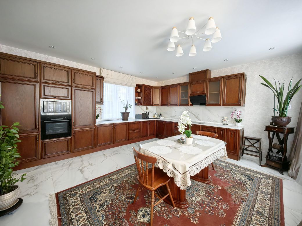 ОПИСАНИЕ ИНТЕРЬЕРА: Интерьер выполнен в благородных оттенках натуральных материалов, подчеркивая гармонию природы и домашнего тепла. Просторные помещения наполнены светом благодаря панорамным окнам гостиной, где установлен стильный диван ASCONA в приятной итальянской велюровой отделкой. Кухня-гостиная оснащена качественным деревянным гарнитуром из массива дуба, создавая атмосферу уюта и тепла.