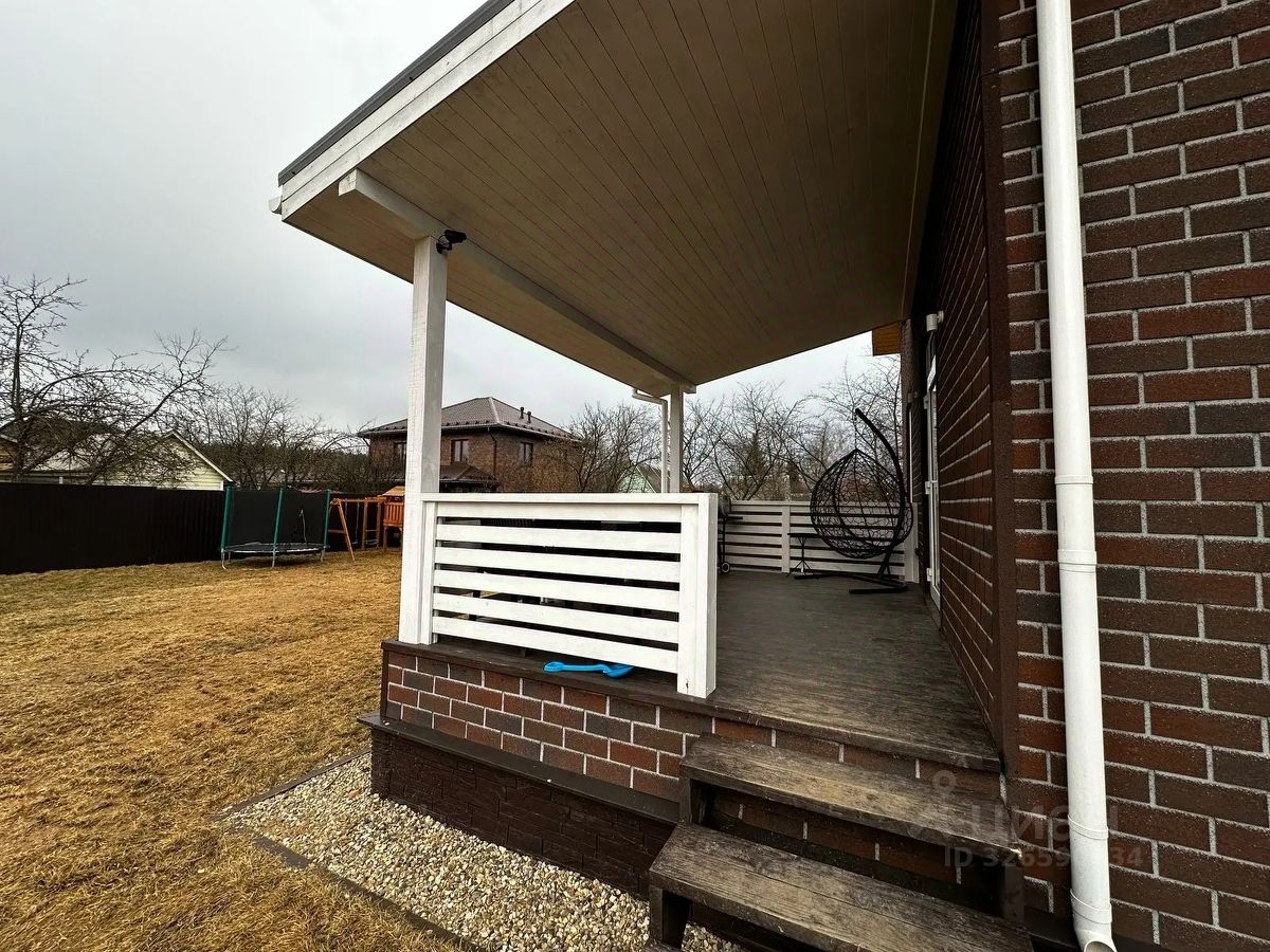 Две террасы (одна огромная, вторая поменьше). Территория огорожена забором, ворота отказные на пульте. Парковка под две машины. На территории имеется хозблок, вольер и детская площадка. Также есть площадка под баню и купель (с подведенным электричеством). Дорожки и парковка - все сделано.