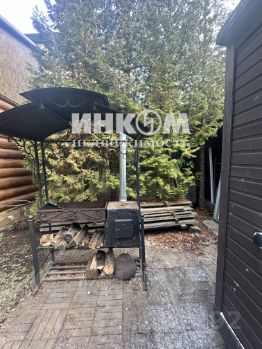 Первый этаж: прихожая, бойлерная, кухня-столовая, гостиная с камином, санузел, кладовка, балкон/веранда с выходом в сад. В саду стоит бытовка, место под мангал, ель, туи, огорожено забором.
