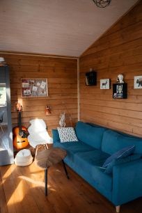 На веранде: деревянная мебель ручного производства.