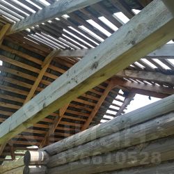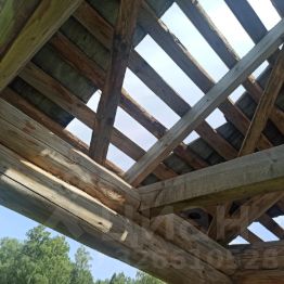 Территория посёлка полностью огорожена, дороги обустроены, въезд шлагбаум. Рядом лес, водоем в пешей доступности. На участке - на сваях, стоит сруб под баню. 4-5.