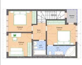 Площадь дома 180 кв..м.(цоколь, 1-й этаж, мансарда).
