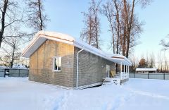 Дом возведен на свайном фундаменте по энергоэффективной каркасной технологии с зимним утеплением, что гарантирует комфорт и низкие эксплуатационные расходы. Фасад отделан термопанелями с клинкерной плиткой, которые обеспечивают дополнительную теплоизоляцию и представляют собой современное, долговечное решение, не требующее ухода.