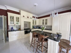 Просторная светлая усадьба в английском стиле 680 м2 на большом участке 39 соток с лесными деревьями. Высокие потолки, панорамное остекление создают простор и много света. 6 спален, 4 санузла, кухня-столовая, двусветная гостиная, кабинет, тренажерный зал, игровая, постирочная, много гардеробных и кладовых. Дом из кирпича - стены 60см очень теплый. (Без отделки фасада). Кровля- натуральная черепица, окна- 2-х камерные из дуба с надежной фурнитурой производства Словения. На полу мрамор, массивная доска. Сантехника известных марок: villeroy-bosch, Duravit, huppe, Hesch. Светильники известных мировых марок: eurolamp, babyitaly, schonbek, кухня итальянская со столешницей из камня, встроенная техника miele. Установлен встроенный пылесос VACUFLO (USA). Управление отоплением -температурные датчики по этажам c возможностью программирования. Теплые водяные полы на 1 этаже и в санузлах. Фундамент и межэтажные перекрытия - ж/б монолит. Лестница монолит, отделана массивом дерева и мрамором. Есть отдельно стоящий гараж -130 кв.м для 2 авто и мототехники, квартира для персонала -2 спальни, кухня, санузел, котельная. В котельной 2 газовых котла и бойлер, все - De Dietrich (Франция), многоступенчатая очистка воды, (USA). Фасад гаража отделан дагестанским камнем. Большой участок с богатым ландшафтом поделен на лесную, садовую и полевую части. В саду растет много плодовых деревьев: есть и яблоневый сад и вишневый и сливовый, много ягодных кустарников, место для огорода, теплица. Есть место для строительства бассейна и теннисного корта. Имеется открытая парковка на 5 авто. Коммуникации: магистральный газ, электричество 30кВт, скважина, станция биоочистки Юбас Лого Лонг - обслуживание 1раз в год.