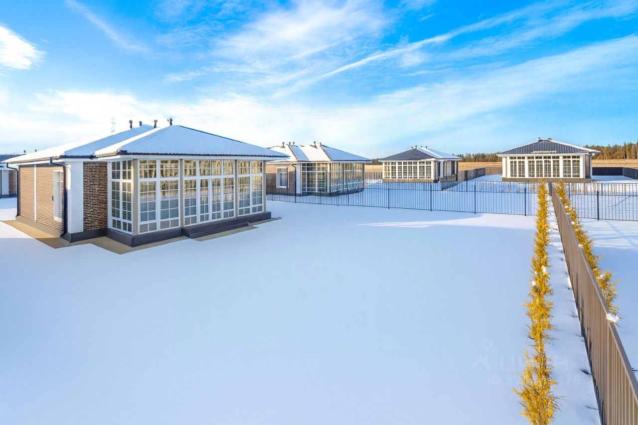 Дом ИЖС с верандой на участке 9 соток в охраняемом коттеджном поселке в зеленой зоне. Подключен к электричеству, есть скважина, установлена станция биоочистки (септик), огорожен забором, поставлены въездные ворота, калитка, забетонированы отмостки и дорожки, участок выровнен, вдоль забора высажены туи. Дом готов к внутренней отделке. Есть возможность в дальнейшем провести газ.