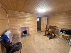 Коммуникации в бане - электричество 15 кВт разведено, отопление печь, электрические конвекторы, вода заведена из колодца.