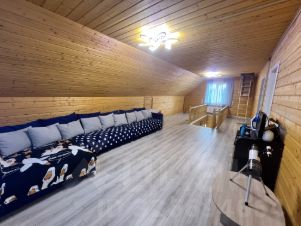 Второй этаж большой холл/гостиная, две жилые комнаты, две встроенные гардеробные + чердачное помещение.