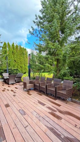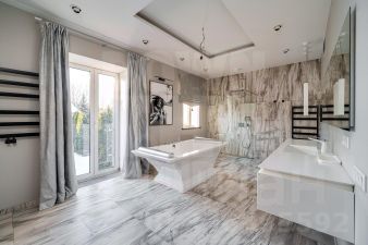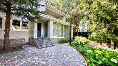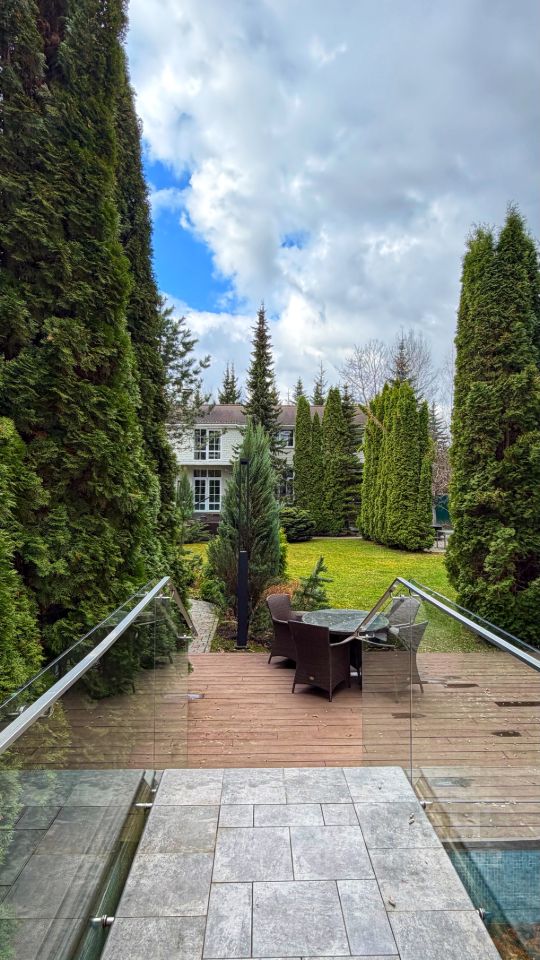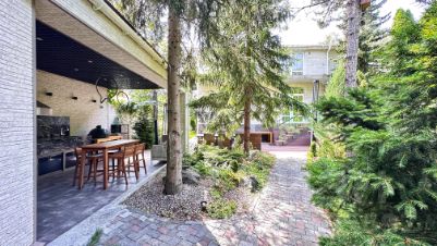 Два дома: основной 600 м² и второй 400 м² на участке 20 соток, 8 спален, 8 санузлов, гараж на 3 машины, бассейн, сауна, камин, зона отдыха, барбекю, спортзал.