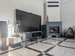 Гостиная Вашей мечты: эмбиент подсветка, шикарный камин с регулировками горения и игры пламени. Домашний кинотеатр со взрослым звуком 5.1.4 Dolby ATMOS.( Звуковой процессинг - Denon, акустика: wharfedale diamond, Jamo) Мебель - итальянская кожа. Принадлежности для камина - эксклюзивная ковка.