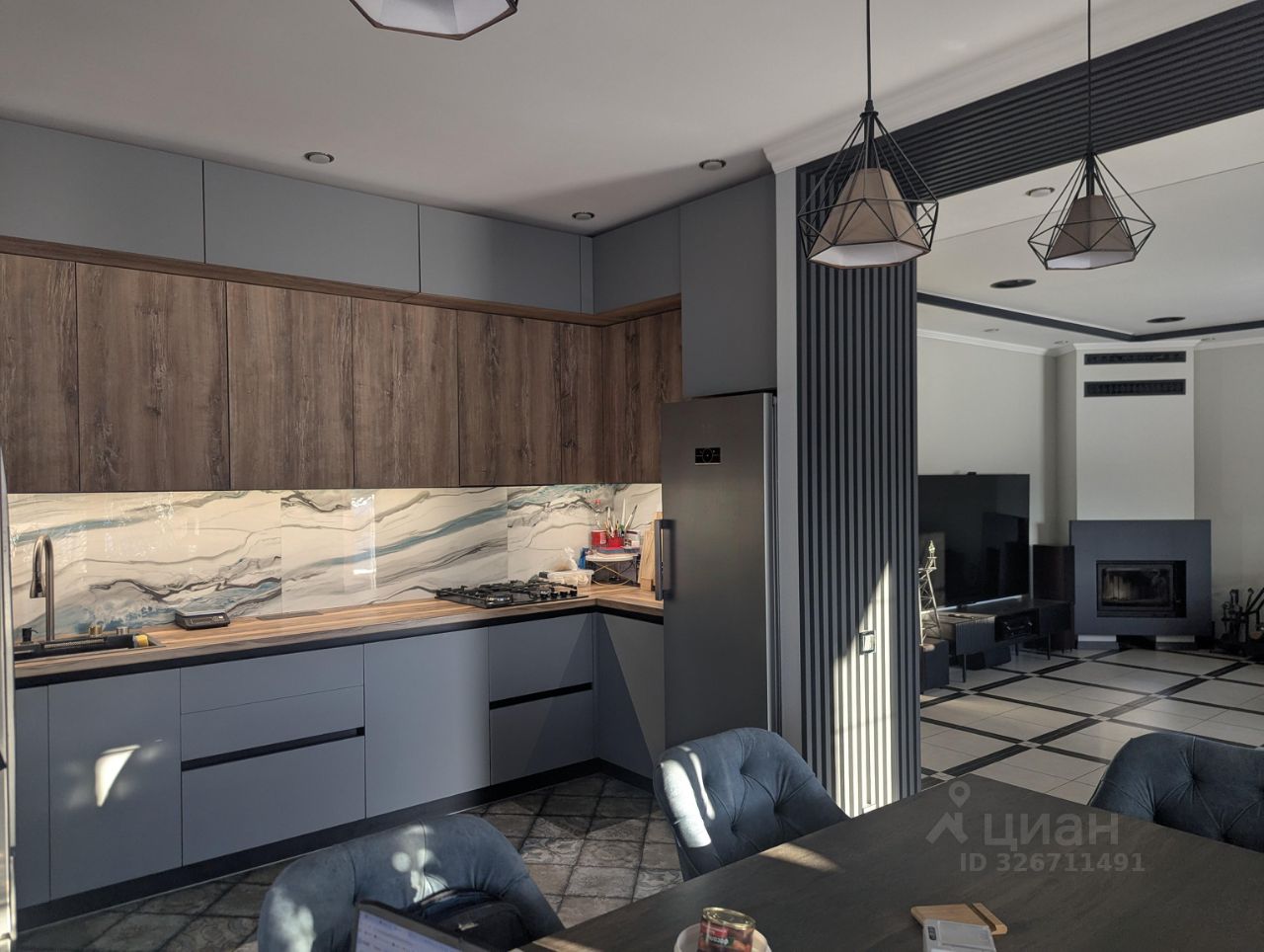 Ультрасовременная кухня с дорогими фасадами, широкоформатным итальянским керамогранитом, супермощной и тихой вытяжкой, подсветкой на датчиках, встроенными розетками, крутой техникой, роскошным большим столом для Вас и Ваших гостей и мягкой удобной мебелью.