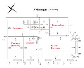 Мансарда (107 кв.м.) кухня/гостиная с кондиционером, две спальни, гардеробная, санузел.