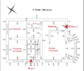 Первый этаж (106 кв.м.) - кухня/гостиная с кондиционером, две спальни (одна с кондиционером), санузел.