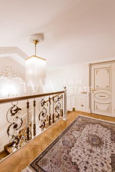 Элегантный таунхаус в классическом стиле с 4 спальнями, 4 санузлами, кухней, столовой, гостиной, верандой, а также гаражом. Общая площадь дома — 470 м², участок — 4,8 сот.