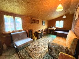 Дом построен из качественного бревна, на ленточном фундаменте, с большой свежей пристройкой из каркаса (утепленная), на сваях. Общая площадь дома 126 кв. м., на первом этаже: просторная кухня 23 кв. м., большая комната с камином, 2 спальные комнаты, терраса и помещение под санузел. На втором этаже большая летняя комната. В доме электричество, на улице колодец 6 колец, с технической водой. Мебель, при желании, останется новым собственникам.