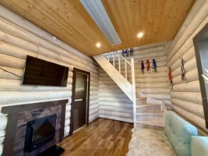 - дом сделан из оцилиндрованного бревна - почти всю мебель и технику оставляем новым собственникам